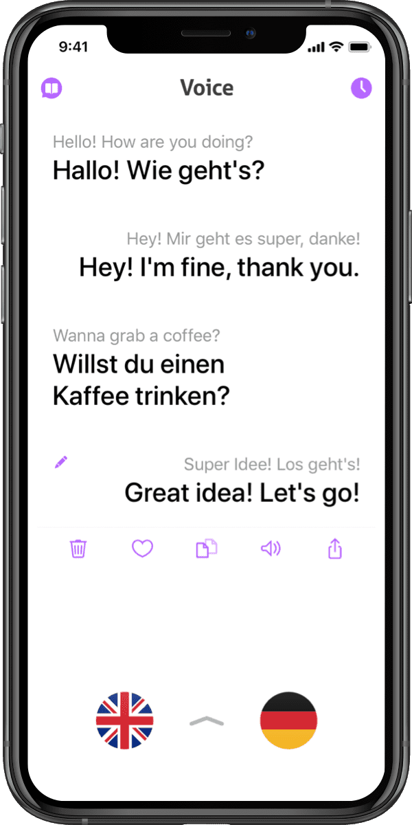 Features including transcripts, predefined phrases and support for voice and text translation make it the perfect translation companion.